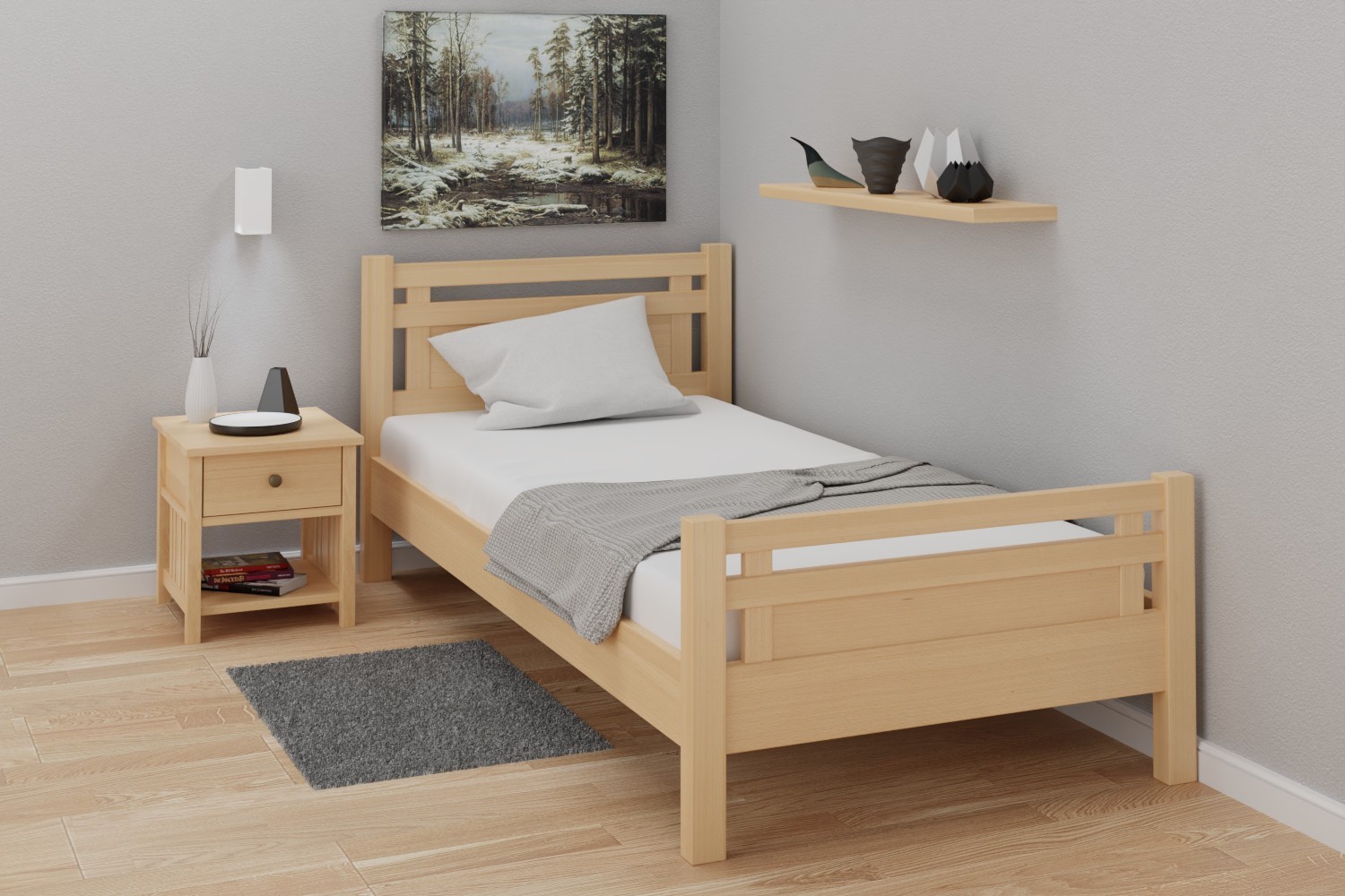 Pat din lemn masiv de fag, frasin sau stejar